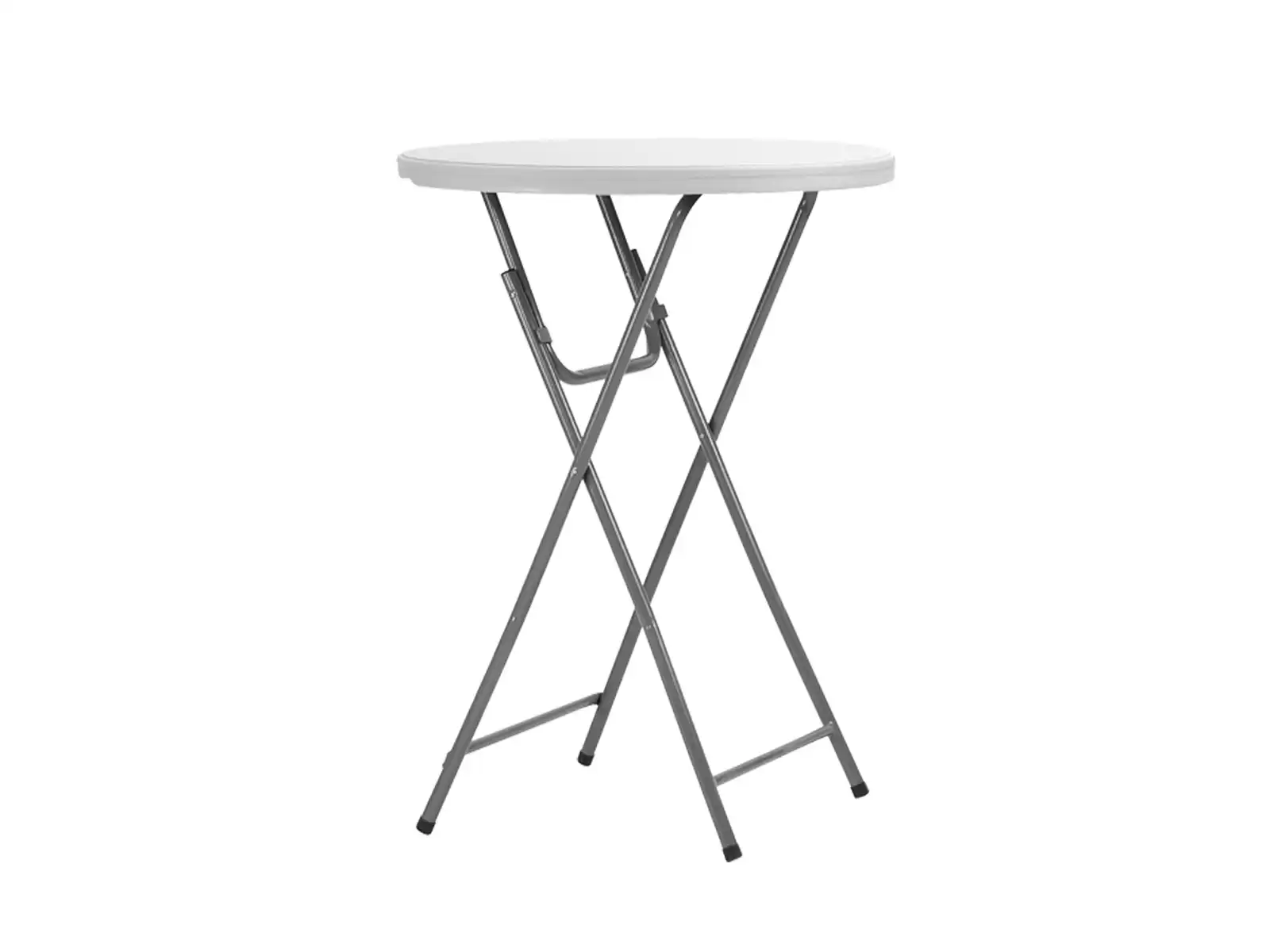 Skládací barový stůl, 80 cm plastová deska. Výška 110 cm. Vhodný i do exteriéru. Možnost doobjednání přepravního vozíku.