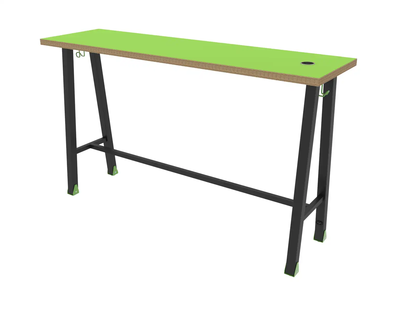 Stolová deska z kvalitní překližky má odolný dekoritový povrch a elegantně frézované hrany ošetřené lněným olejem. Vybaven háčky na obou stranách.