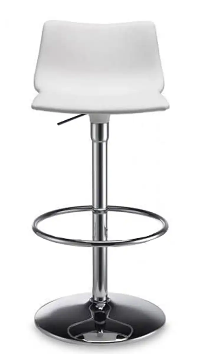 Výškově nastavitelná, chromovaná otočná barová židle, plastový sedák. Vhodná do interiéru. Výška do 57 do 79 cm.