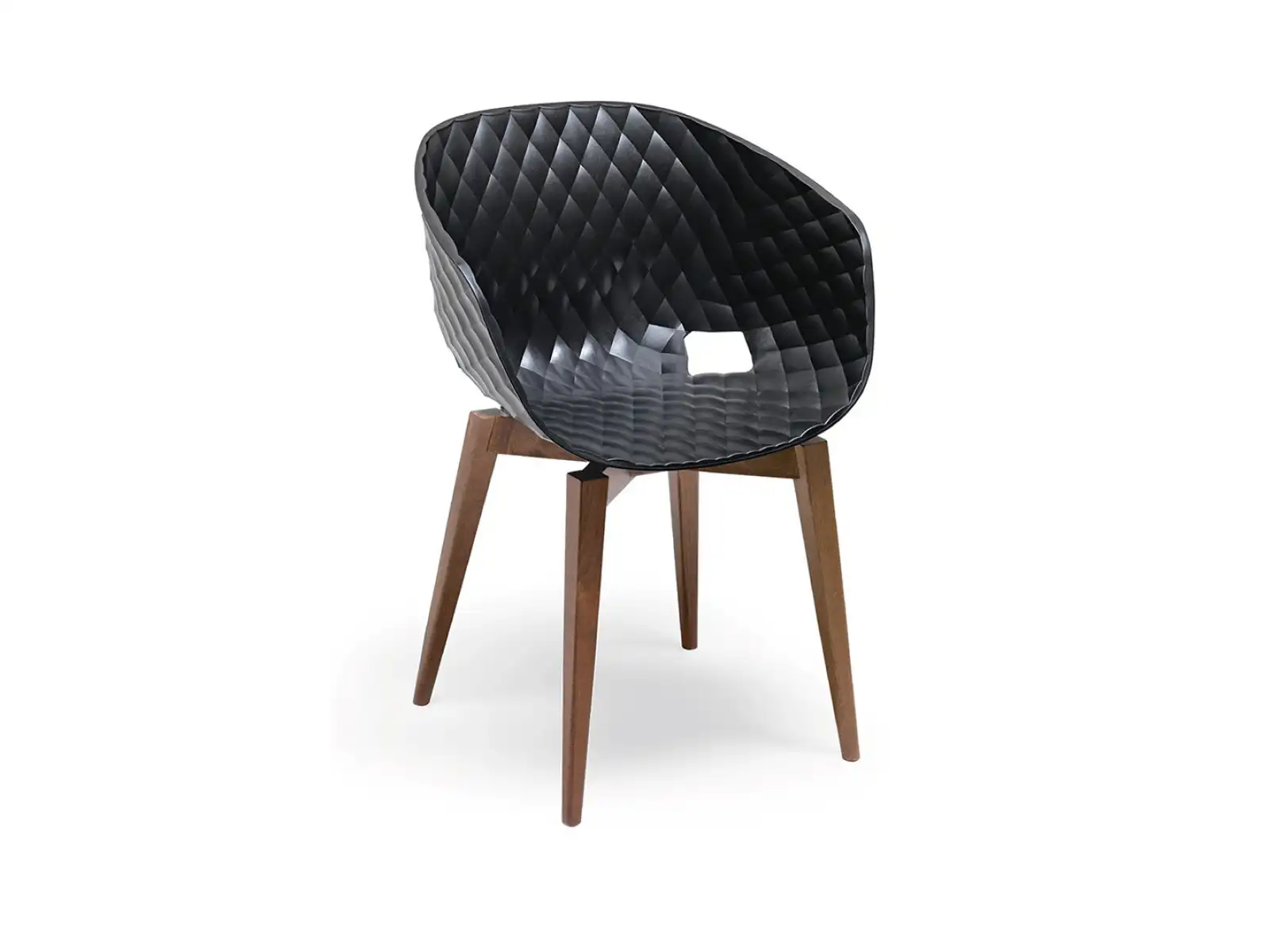 Jídelní židle, ocelový rám, vyztužená sklolaminátem, UV odolný polypropylenový potah, jehož vzor připomíná diamant. Konstrukce může být na požádání chromovaná. Doporučuje se také k venkovnímu použití, lze stohovat. Výška sedu je 76 cm, ale je k dispozici i se 65 cm (Uni 378B), lze jej objednat v balení po 5 ks/ barva.