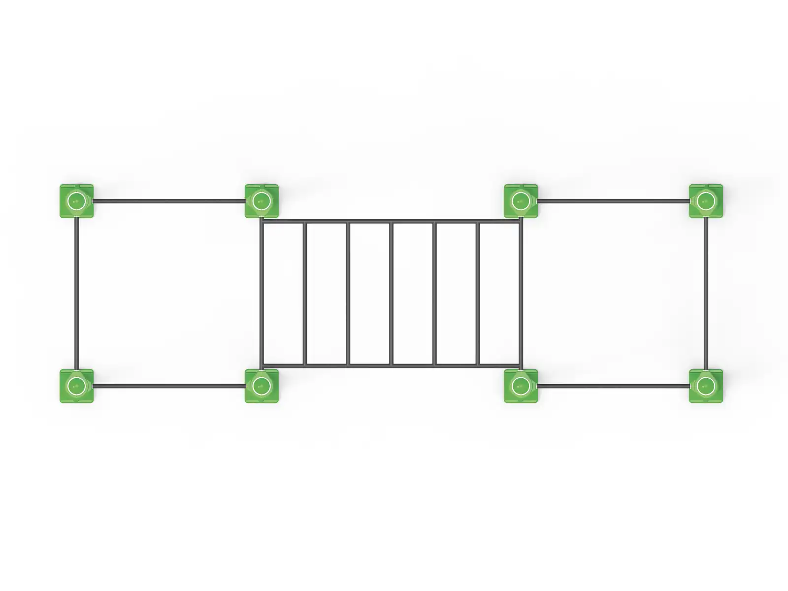 Prvky této konstrukce jsou pevně spojeny pomocí svorek, což zajišťuje stabilitu a bezpečnost při cvičení.